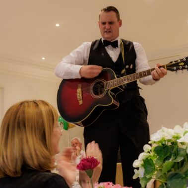 Den Pokal (Bester Bruttosieger) erhielt in diesem Jahr Andreas Küchler. Nach kurzer Irritation blieb kein Auge „trocken“ als das Spaß Kellner-Team des Café Kølberts unsere Gäste mit viel Humor und einigen Gesangseinlagen unterhielt.